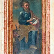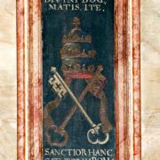 Im alten Kanzeldeckel hatte sich der protestantische Vikar, der 1633/34 während der Wirren des 30-jährigen Krieges hier amtierte, mit einem Text eingetragen. Den Triumph, daß danach wieder ein rechtgläubiger katholischer Priester hier einzog, gibt der lateinische Text der mittleren Gemäldetafel wider: