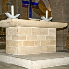 2.1 · Innen - Übersicht / Taufstein & Altar