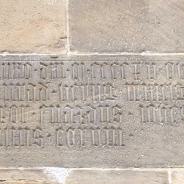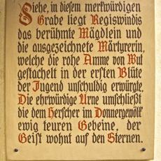 Maria barbara unndt beniamin zwey Lehenpfläntzlin M. gottfridt Kuhorsten Specialis zu Lauffen u. Maria Margarethä Geborner von Calb. Jene Geboren zu Stutgart 16.9br wider Geboren 17.9br. 1676 gestorben zu Lauffen 1. Febr: 1678. Diser Geboren zu Lauffen 11. May wider Geboren 12. May 1678 Gestorben Allda 25. Marty 1680 Ligen bey Einander under disem Stein begraben In der Kirch zu Lauffen zur Rechten des Altars Gewise Erben des Ewigen Lebens.