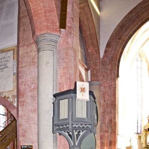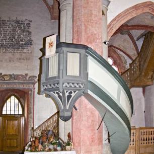 Der Aufgang zur Kanzel stammt aus dem Barockzeitalter, die Kanzel selbst aus dem 19. Jahrhundert. Sie ist in neogotischen Formen gestaltet.