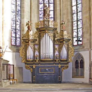 Im Jahr 1480 erhält die Pfarrkirche eine Orgel, 1564 nach einem Blitzschlag verbrennt die Kirche samt Orgel. Die Kirche wird 1567 wieder aufgebaut. Über die Orgel, die im Verlauf der nächsten Jahrzehnte angeschafft wurde, ist nichts weiteres bekannt, als daß am Matthäustag 1699 ihre Beschaffenheit ("wie nötig und auch gefällig es sein werde, wenn das schlechte Orgelwerk, das zu der großen Kirche schlecht passe, durch ein anderes und besseres ersetzt werde") zum Beschluss einer neuen Orgel führte, die am 5. Juni 1701 (Hauptwerk, Positiv und Pedal) eingeweiht wurde; bei einer Reparatur 1785 stellt J.M.Bühler fest, dass die Orgel (18/I) seit 20 Jahren nicht mehr repariert worden sei.