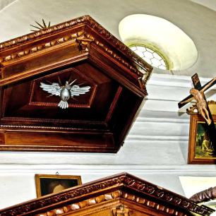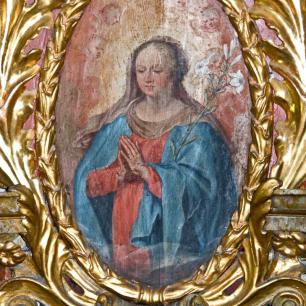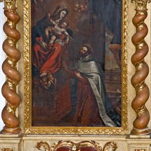 In der Kirche sind mehrere "Skapuliermadonnen" zu finden. Wikipedia erläutert dem Unkundigen was das ist.