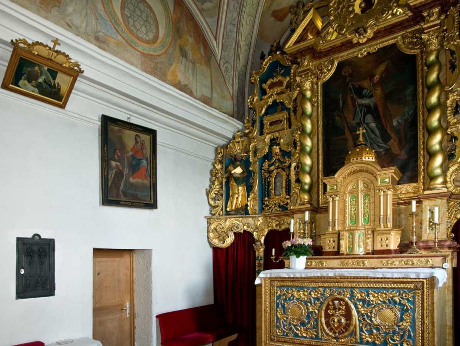 Der Hochaltar im Chor ist barocker Herkunft und dürfte um 1700 entstanden sein. Der Mittelteil mit dem lebensvollen Bildnis des Patrons wird durch zwei goldschimmernde gewundene Säulen eingerahmt. Früher sah der Hochaltar anders aus. Die beiden Flügel des spätgotischen Altars sind abgewandert und zwar nach Zürich. In einem Saal des schweizerischen Landesmuseums kann man die wohl bald halbjahrtausendalten Altarflügel bewundern. Sie stellen Johannes den Täufer und den Heiligen Luzius sowie Maria Magdalena und die Heilige Barbara mit ihren Symbolen dar.