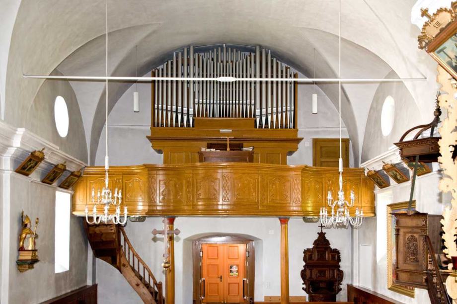 Seit 1964 steht die Kirche unter Bundesschutz. Bis 1972 waren die Zifferblätter am Turm nur aufgemalt. Dann hat man auf der Dorfseite eine richtige Uhr eingebaut."