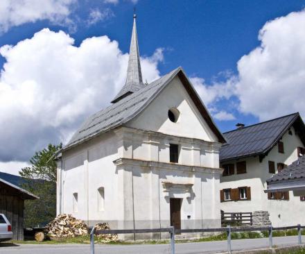 "Die erste Kapelle in Egga wurde 1675 von Antonio del Agosto mit Hilfe anderer Nachbarn gestiftet. 1716 wurde ein völlig neuer, genordeter Bau erstellt. St. Antonius in Egga ist die grösste Kapelle in Obersaxen.