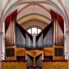 Die 1957 von der Firma Rieger in Schwarzach/Vorarlberg mit 4 Manualen und 55 Registern erbaute Orgel erregte in Fachkreisen Aufsehen und gab dem deutschen Orgelbau starke Impulse. Eine viermanualige Orgel ist schon ihrer Größe wegen nichts Alltägliches, auch heute nicht. In dieser Orgel finden sich aber darüber hinaus eine ganze Reihe von technischen und klanglichen Neuerungen, die in ihrer Gesamtheit imponieren und in der Zwischenzeit großenteils allgemein vom Orgelbau übernommen worden sind.