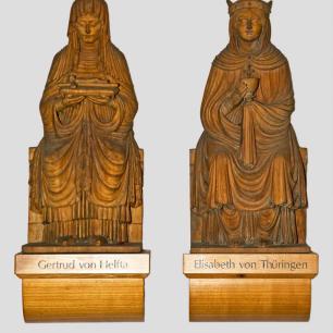 Die heilige Elisabeth (bislang an der rechten Querhauswand) hat als Namenspatronin der Kirche ihren Platz mitten in der Gemeinde am linken Vierungspfeiler erhalten. Die farbig gefaßte, hölzerne Statue ist eine Kopie einer Figur von Tilman Riemenschneider.