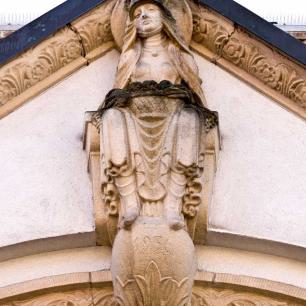 2.07 Linkes Querhaus mit der Figurengruppe "Vermählung Mariens" (Stirn) - Marienstatue