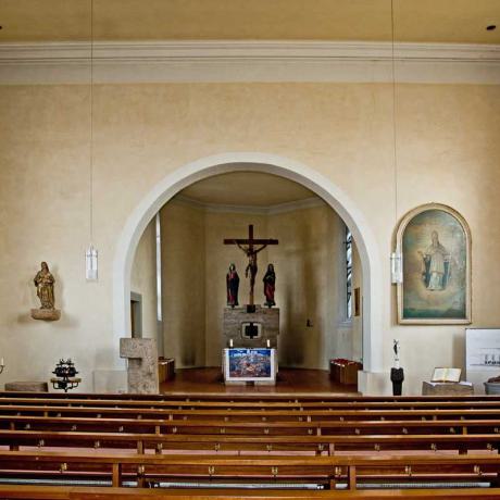 in dem der Tabernakel eingefügt und Basis für die Kreuzigungsgruppe (l. Maria, r. Evang. Johannes) ist