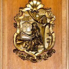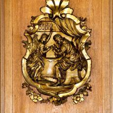 an der Brüstung der Empore waren ursprünglich an der alten Kanzel angebracht und wurden im Zuge der Renovierung 1970/71 versetzt.
