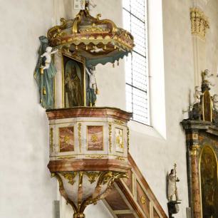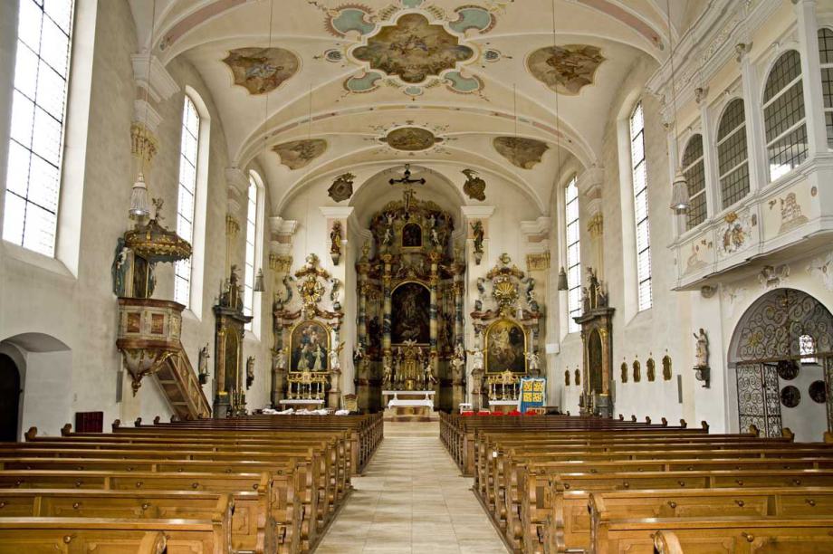 "Die Katholische Pfarrkirche St. Martin ist eine der Perlen an der Oberschwäbischen Barockstraße und von kunstgeschichtlicher Wertschätzung. In lichter Heiterkeit zeigt sich hier die Bau- und Gestaltungskunst des Barock" - ist auf der Website der Gemeinde Langenargen zu lesen. Dort ist die Kirche kurz vorgestellt, ausführlichere Informationen findet man einerseits auf Wikipedia, andererseits im Führer "Die katholische Pfarrkirche SANKT MARTIN IN LANGENARGEN", verfasst von Dr.Otto Beck, in 4. überarbeiteter Auflage im Jahr 1994 im Verlag Schnell & Steiner GmbH Regensburg erschienen.