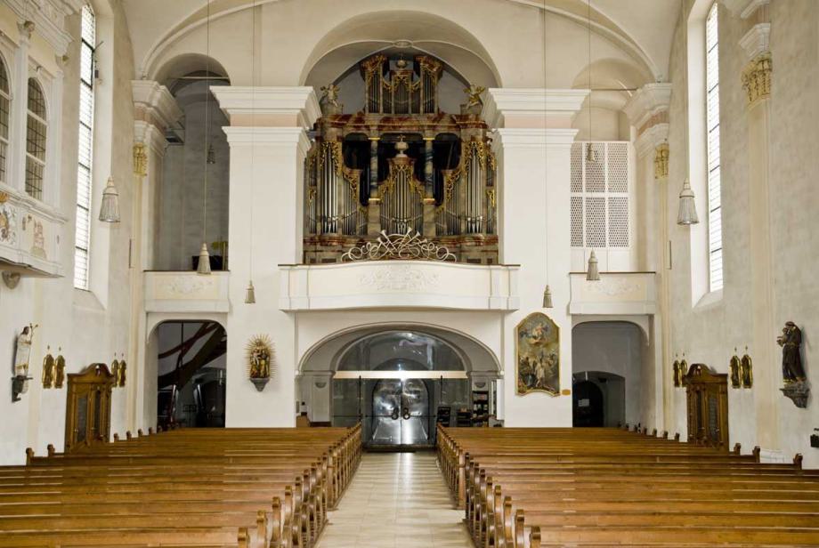 1936 stellt Fa. Gebr. Späth (Mengen-Ennetach) ein neues Werk mit 23 Registern und elektropneumatischer Traktur hinter den alten Prospekt. Für einige Register wird eine spätere Einbaumöglichkeit vorgesehen. Beim Umbau im Jahre 1963 werden in die offenen Flächen zwischen Hauptwerk und Positiv Prospektpfeifen gesetzt; der Mittelturm und die beiden sich anschließenden Pfeifenfelder werden erniedrigt.