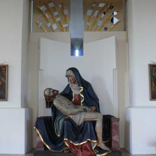 Eine alte Marienretabel umrahmend (16. Jahrhundert) wurden Hochaltar, Zelebrationsaltar, Ambo und die Sedilien als Einheit neu geschaffen. Auch wurde das gleichfalls neugeschaffene Taufbecken in die Kirchenmitte verlegt."