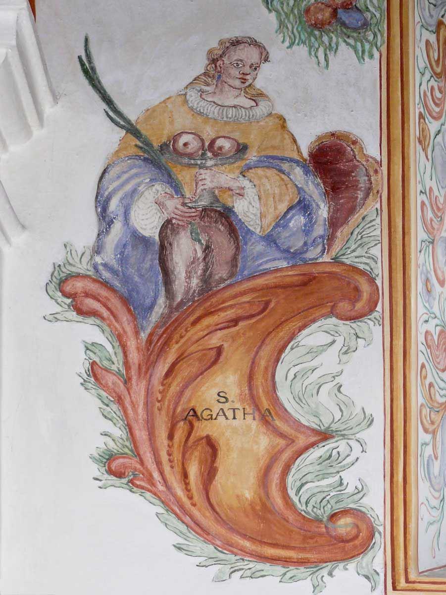Rechter Seitenaltar: Joachim und Anna, links: Hl. Agatha, rechts: Hl. Apollonia