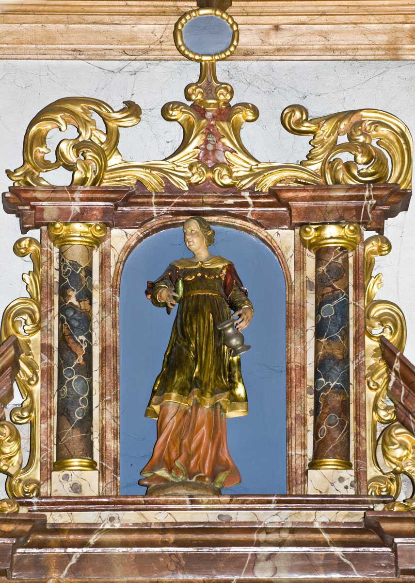Attribute: Kamm, als Nonne mit Krug und Kamm bzw. Krug und Brot