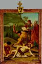 Diese fünf Bildtafeln schmückten früher die Kanzel und wurden erst im 20. Jahrhundert (nach Wegfall der Kanzel) hier an der Emporenbrüstung angebracht. Im Kirchenführer (Veronika v. Dobrogoiski) ist dazu zu lesen: