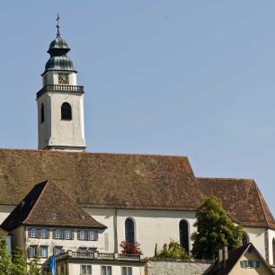1712 zerstört nach zweistündigem Platzregen eindringendes Wasser das Orgelwerk der Stiftskirche. Hans Jakob Rueff aus Rottenburg ist mit der Wiederherstellung 5 Tage beschäftigt. Orgelwerk und Positiv sind zu dieser Zeit im Chorraum aufgestellt. 1725 fällt die Kirche samt Orgel einem großen Stadtbrand zum Opfer.