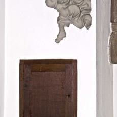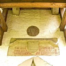 Neben dem vermauerten Schluss-Stein mit einem Christuskopf befindet sich ein Stein mit dem Wappen der Thumb, der Ortsherrschaft im 16. Jahrhundert, mit der Inschrift: