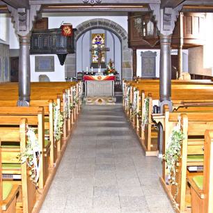 Der Stuttgarter Architekt Heinrich Dolmetsch gab der Kirche einen weiteren Akzent mit der Bemalung der Deckenbalken im Jugendstil.