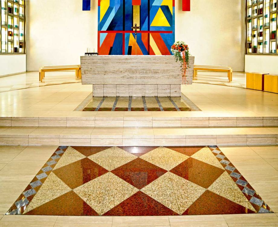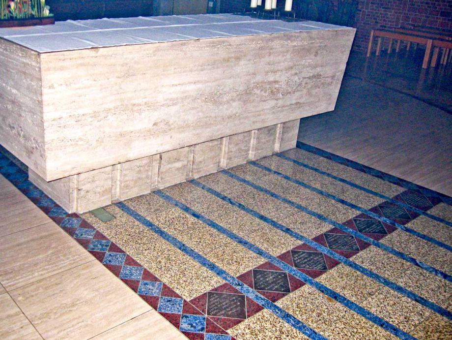 Textfelder im Boden hinter dem Altar -Einzelbilder