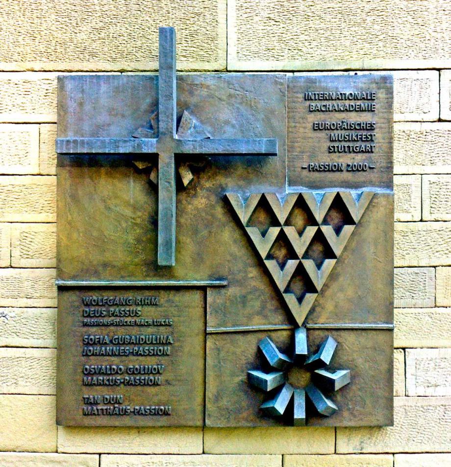 Aus diesem Anlaß schuf Otto Herbert Hajek eine Bronze "Passion 2000", welche an der Außenseite der Internationalen Bachakademie Stuttgart angebracht und am 8. September 2000 enthüllt wurde. Sie basiert auf dem Kreuzweg in St. Johannes wie man unschwer erkennen kann: