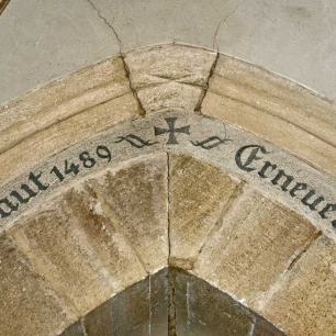 Bei der Sanierung der Kirchenmauer 2009 wurde eine Kopie des Inschriftensteins erstellt, die nun am ursprünglichen Platz (links vom Eingang in der Kirchenmauer) eingefügt ist. Das stark beschädigte Original ist im Kircheninnern vor Witterungseinflüssen geschützt und bleibt so für die Nachwelt erhalten.