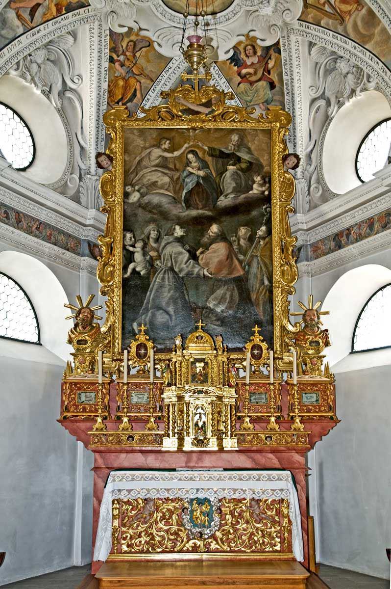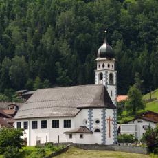 "Die Pfarrkirche ist der Hl.Dreifaltigkeit (Sontgissima Trinitad) geweiht. Sie wurde 1656 gebaut und 1995/96 umgebaut.