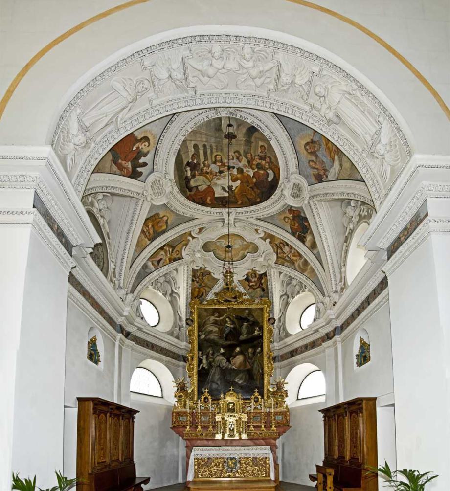 Hinweis zu Poeschel: Dort ist die Kirche natürlich vor dem Umbau 1995/96 beschrieben. Grundriss des Schiffs und die Innenausstattung sind heute grundlegend anders. Siehe u.a. Bericht der Architekten.