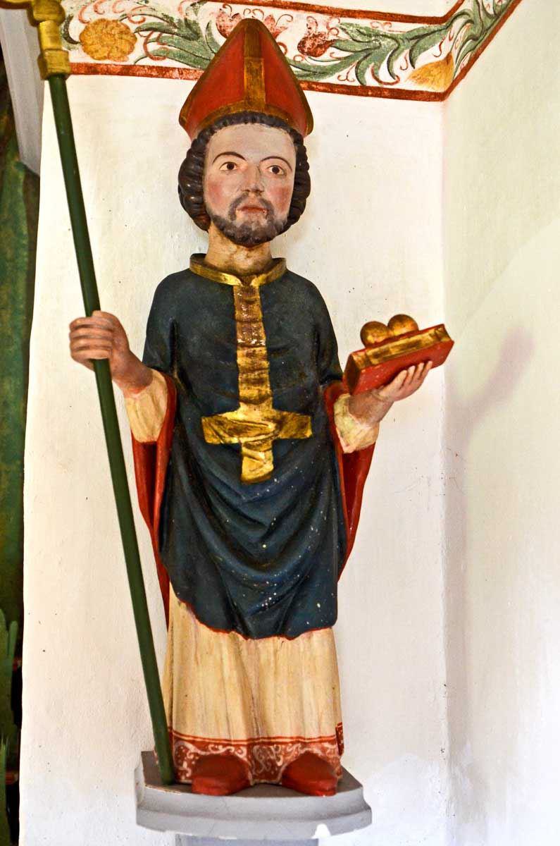 Ursprünglich soll am gleichen Standort eine frühere Kapelle aus dem Mittelalter der Heiligen Dreifaltigkeit geweiht gewesen sein. Anlass für den Titelwechsel und den Neubau um 1708 1710 gab vermutlich ein Bauer, der zu Beginn des 18. Jahrhunderts beim Pflügen seines Ackers auf eine bemalte Nikolausstatue gestossen sein soll.