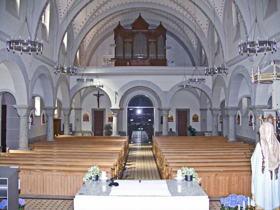 Kurz darauf wurde mit dem Bau der dreischiffigen Kirche im romanisierenden Stil begonnen. Die Pläne stammten vom St. Galler Architekten Hardegger. Am 16. September 1900 weihte der Churer Bischof Johannes Fidelis Battaglia das Gotteshaus feierlich ein.