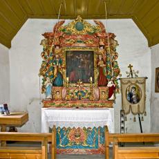 "Die Kapelle wurde vor 1668 erbaut. Die nach Norden gerichtete, anspruchslose einräumige Kapelle mit der trapezförmigen Leistendecke wird von einem Satteldach mit Dachreiter gekrönt.
