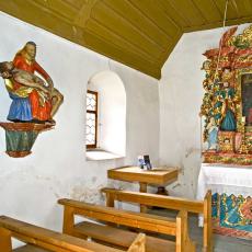 "Das Altarbild wurde 1668 von Nicolao Giuliani gemalt, doch die Kapelle soll älter sein. Das Bild zeigt die Begrüssung zwischen Maria und ihrer Base Elisabeth und im Hintergrund derjenigen von Josef und Zacharias. Das Bild an der Ostwand ist ein Beweinungsbild; der von Kreuz abgenommene Jesus liegt im Schoss seiner Mutter. Dieses ist nicht signiert, wird aber von Poeschel auch als mögliches Giuliani-Bild gewertet.