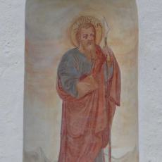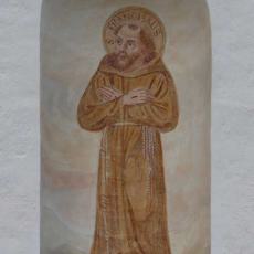 Zwei ausgemalte Nischen flankieren das Eingangsportal, links der hl. Thomas, rechts der hl. Franziskus.