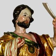 Nordwand: Statuen: Hl. Valentin (mit Stab und Buch) Hl. Bartholomäus (mit abgezogener Haut, auf dem Arm tragend)