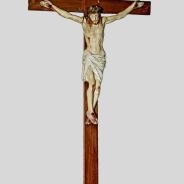 Altarbild mit dem Gekreuzigten. Die spätgotische Predella von 1490 wurde 1643 von Filisur gekauft. Darstellung: Leidenschristus, Maria und Johannes, flankiert von den Aposteln Petrus und Paulus.