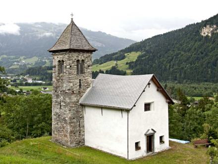 "Die Kapelle St. Maria Magdalena steht in Rueun in der mittleren Surselva. Sie ist unter dem Denkmalschutz des Kantons Graubünden.