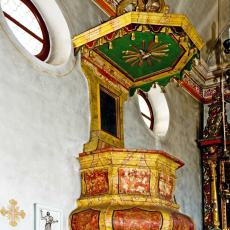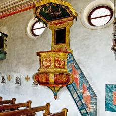 2.1 Innen: Taufstein, Kanzel