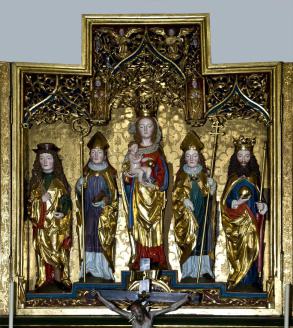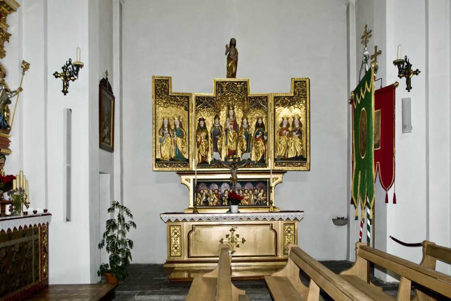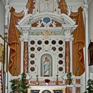 - 4 Chor mit Hochaltar, Stuckdecke, Chorgestühl, Reliquienschreine