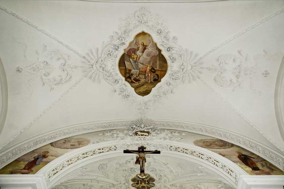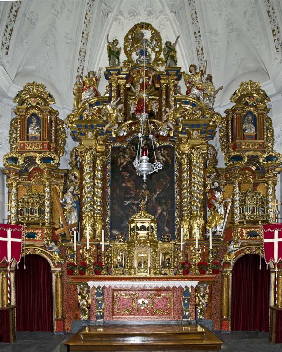 4 Chor mit Hochaltar, Stuckdecke, Chorgestühl, Reliquienschreine