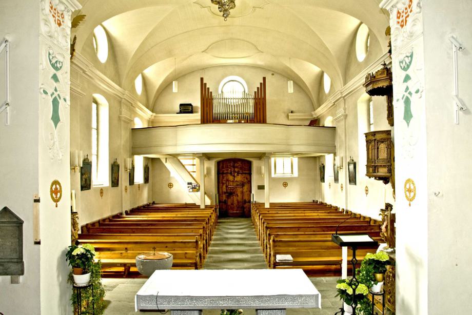 Sogn Flurin, erstmals 1481 erwähnt, wird im Visitationsprotokoll von 1641 genauer beschrieben. Diese Kirche wurde um 1740 niedergelegt und durch einen barocken Neubau ersetzt (1744 geweiht). Der alte Turm blieb zunächst stehen, musste 1924 wegen Baufälligkeit auch erneuert werden.