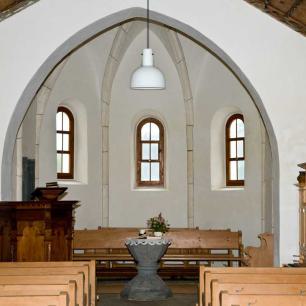 1733 wurde das Schiff ein zweites Mal verlängert. Damals erhielt die Kirche auch ihre Kanzel, auf der heute noch zu lesen ist: "Wer Gottes wortt an hierz (im Herzen) nicht nimbt an. Der wirtt Dort kein leben han - mein fromer mann."