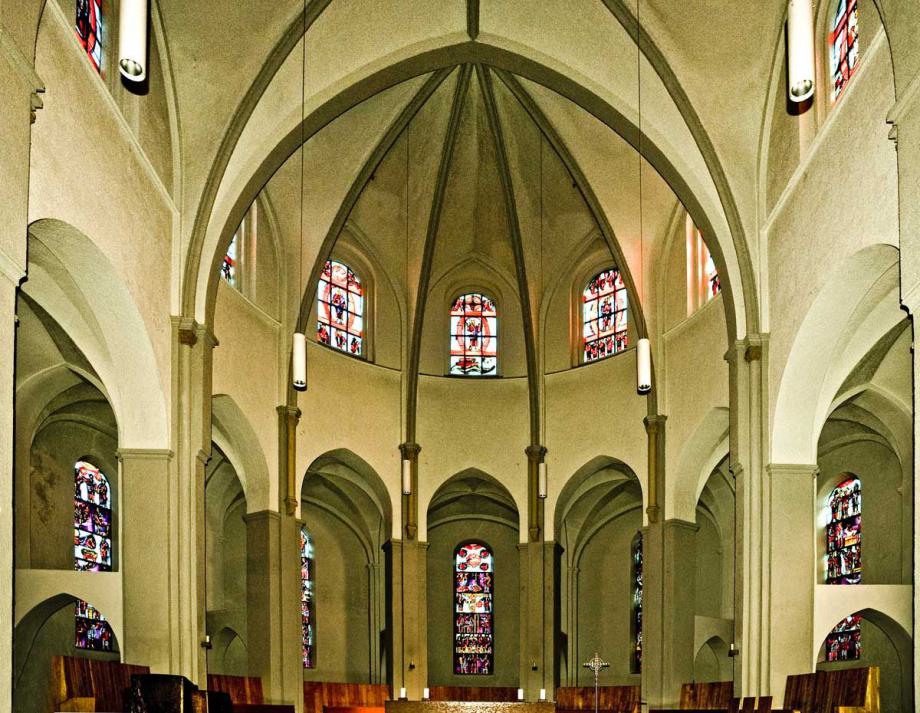 Die Beschreibung der 7 Obergadenfenster ist der Broschüre 75 Jahre entnommen.