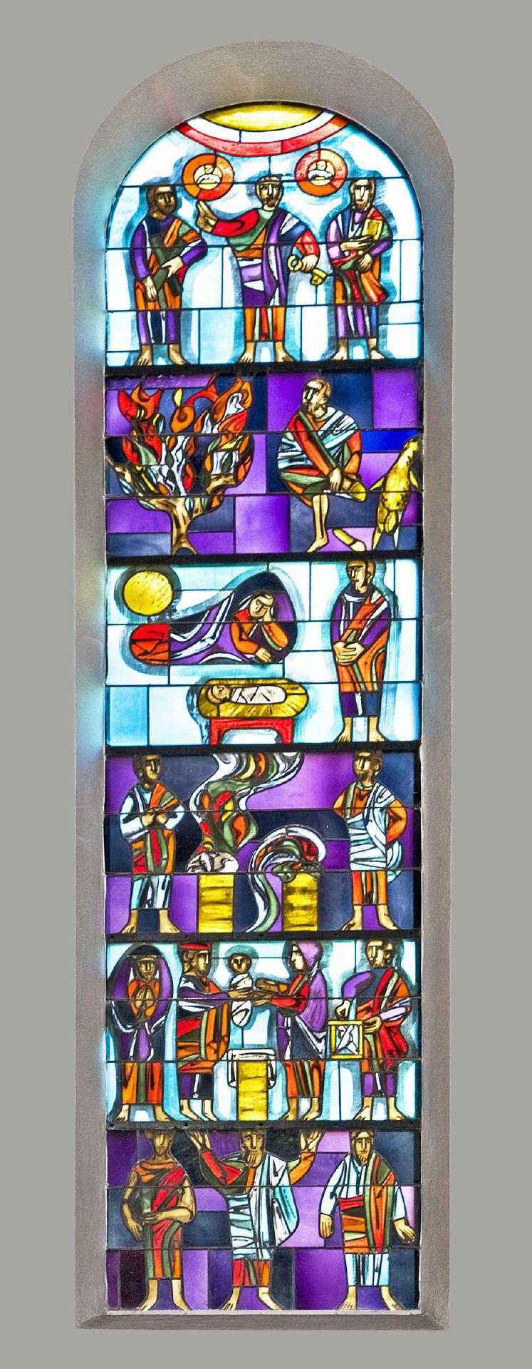 Die großen Fenster im Chorumgang zeigen zentrale im Alten und Neuen Testament überlieferte Szenen der Heilsgeschichte.