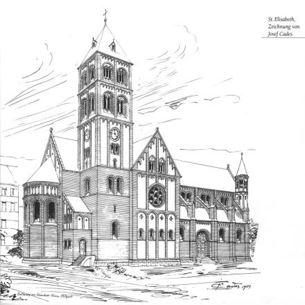 Dieser Festschrift ist die Zeichnung von Josef Cades (s.o.) entnommen, ebenso der Grundriß der Kirche (s.u.).