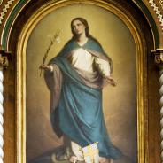 Der Fliegerangriff am 28. April 1944 richtete an der Kirche, insbesondere an den Kirchenfenstern und am Dach beachtliche Schäden an. Eine Innenrenovierung im Jahr 1953 diente dann der Beseitigung der Kriegsschäden. Die Kirche ist dadurch licht und hell geworden, und der Stuckspiegel an der Decke mit dem Marienmonogramm auf hellblauem Grund zeigt dem Besucher, dass er in einem Marienheiligtum steht. Damals kam auf der Kanzelseite der alte steinerne Altartisch zum Vorschein, und der spätgotische Taufstein aus dem 15. Jahrh. wurde wieder im Kirchenraum aufgestellt.