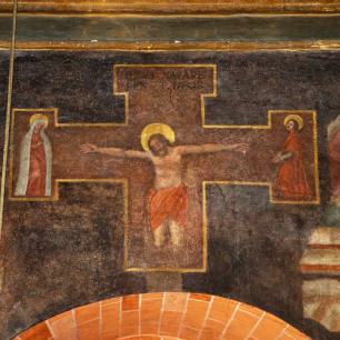 Schriftband unter den Fresken der Westwand