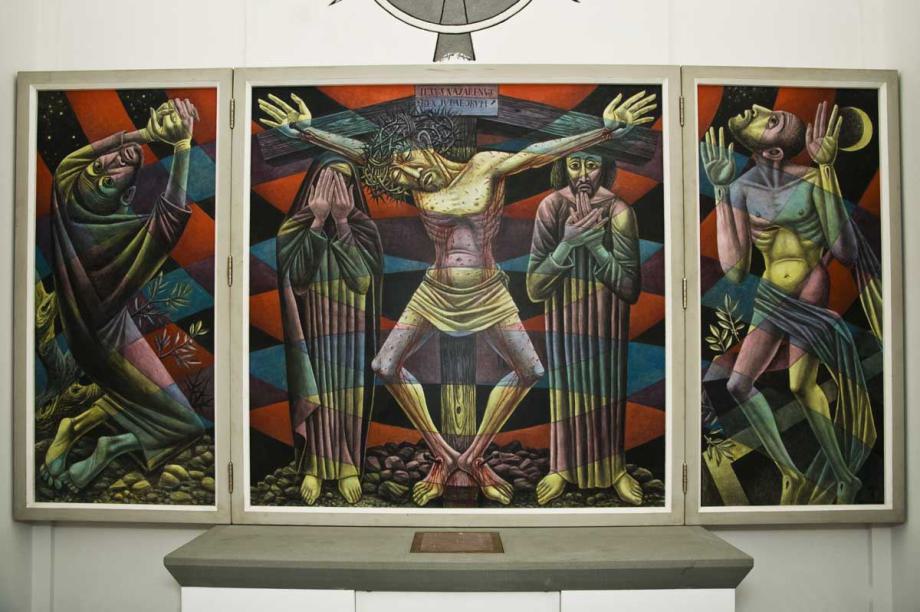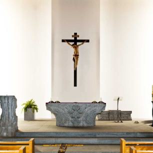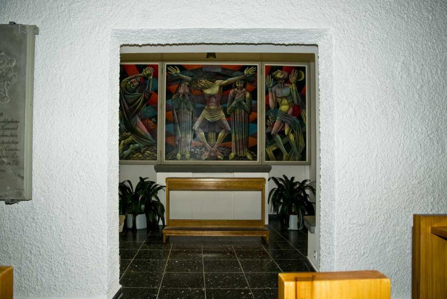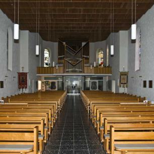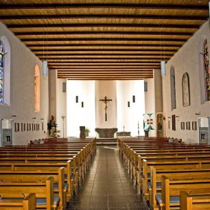 Bei der folgenschwersten Baumaßnahme 1962 wurde der Chorraum von Ost nach West verlagert. Seine heutige Ausgestaltung erhielt der Chorraum 1984. Diese Gestaltung wird nun im Jubiläumsjahr 2010 durch ein neues Lichtkonzept in seiner Wirkung gesteigert."
