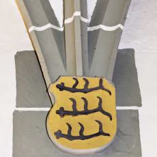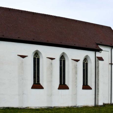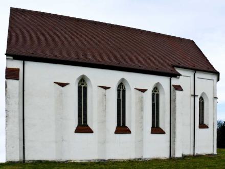 Herzog Philipp von Württemberg schenkte 1947 die stark baufällige Kapelle und das daneben liegende Leprosenhaus ( erstmals urkundlich erwähnt 1496) der Kirchengemeinde zurück, die sie renovieren ließ und wieder als Gottesdienstort nützt. Die Wappen zeigen die Genealogie der Monforter und Öttinger über drei Generationen. "