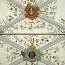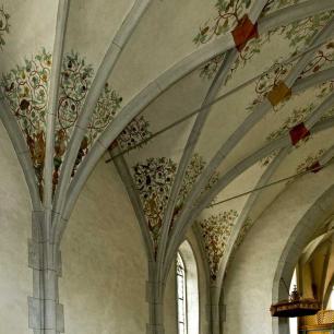 Die Rauten im Scheitel sowie die unteren Gewölbezwickel sind mit Ranken verziert. Die Schlußsteine sind mit Wappen bemalt.