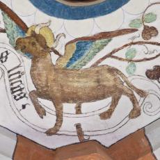 Die Bilder im Deckengewölbe wurden anlässlich der Renovation von 1934 freigelegt. Im Mittelfeld sind die Symbole der vier Evangelisten gemalt, auffallend sind die Darstellungen des Todes in den Zwickeln, in denen der Tod nicht als Gerippe dargestellt ist. Datiert sind sie mit 1518."